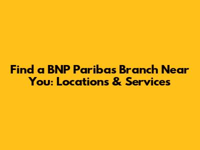 Are you looking for a BNP Paribas branch nearby? Finding a convenient bank location is essential for managing your finances efficiently. Whether you need to deposit a check, open an account, or speak with a financial advisor, knowing where to find a BNP Paribas branch can save you time and hassle. In this article, we'll guide you through the various methods to locate a BNP Paribas branch near you and highlight the services you can expect to find there.