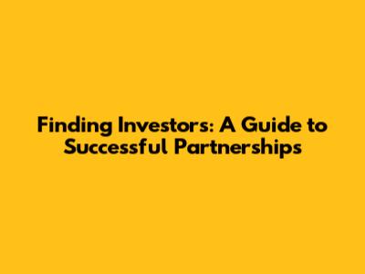 Finding Investors: A Guide To Successful Partnerships