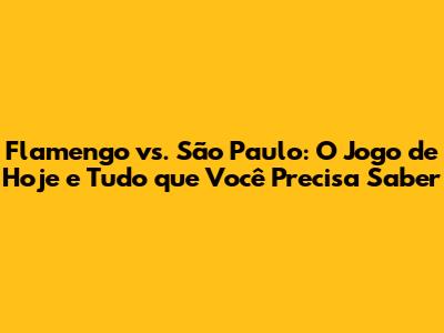 Flamengo Vs. São Paulo: O Jogo De Hoje E Tudo Que Você Precisa Saber