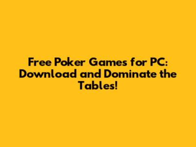Download and Play Free Poker Games for PC Today!