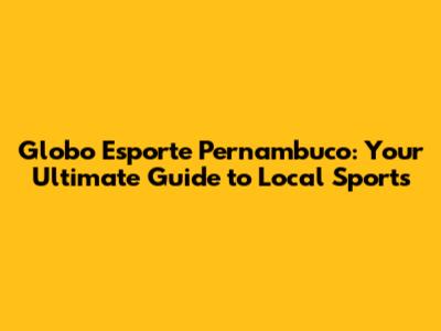 Globo Esporte Pernambuco: Your Go-To Guide