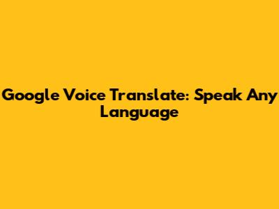 Google Voice Translate: Speak Any Language