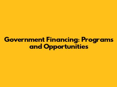 Government Financing: Programs And Opportunities