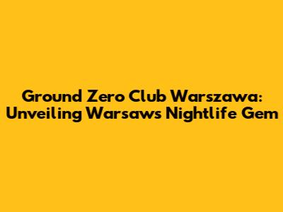 Ground Zero Club Warszawa: Your Nightlife Guide
