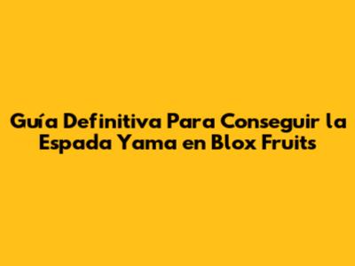 Guía Definitiva Para Conseguir La Espada Yama En Blox Fruits