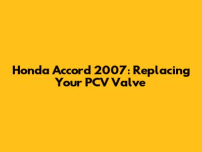 Maintaining Your 2007 Honda Accord's PCV Valve for Longevity