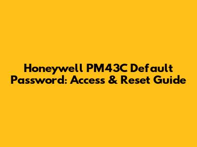 Honeywell PM43C Default Password: Access & Reset Guide