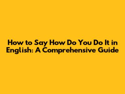 How To Say 'How Do You Do It' In English