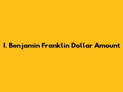 I. Benjamin Franklin Dollar: What's It Worth?