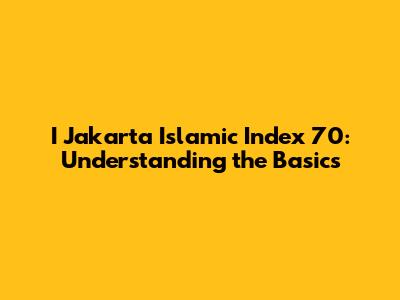 I Jakarta Islamic Index 70: Understanding The Basics