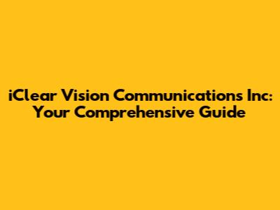 Hey guys! Ever heard of iClear Vision Communications Inc? If you're scratching your head, no worries! This article is your one-stop shop for everything related to this company. We'll dive deep into what they do, their history, services, and maybe even a peek into their future. So, buckle up, because we're about to embark on a journey to uncover all the juicy details about iClear Vision Communications Inc.