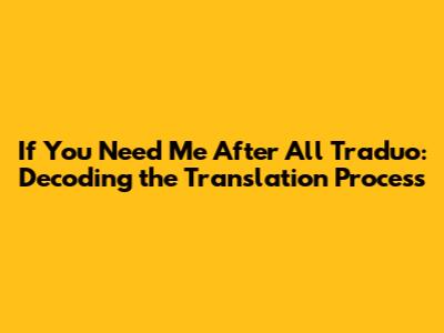 Hey everyone, let's dive into the fascinating world of translation, specifically focusing on the intriguing phrase "If You Need Me After All Traduo." It's a phrase that sparks curiosity, right? What does it mean? How does it fit into the broader context of language and communication? In this article, we'll unravel this phrase, exploring its nuances, potential interpretations, and the role of Traduo, a platform or service likely involved in the translation process. Let's get started, guys!