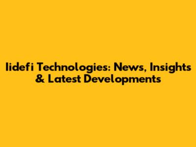 Iidefi Technologies: News, Insights & Latest Developments