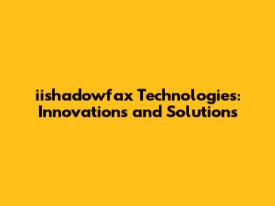 Iishadowfax Technologies: Innovations And Solutions