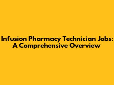 Infusion Pharmacy Technician Jobs: A Comprehensive Overview
