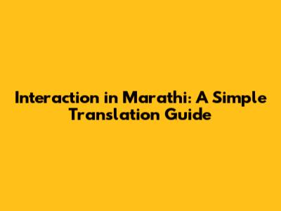 Interaction In Marathi: A Simple Translation Guide