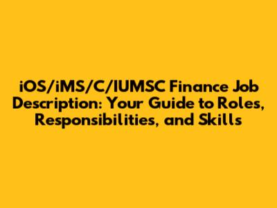IOS/iMS/C/IUMSC Finance Job: What You Need To Know