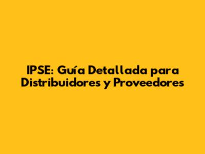IPSE: Guía Completa Para Distribuidores Y Proveedores