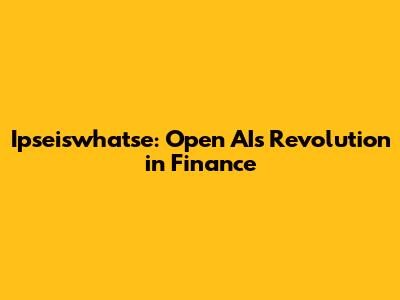 Ipseiswhatse: Open AI's Revolution In Finance