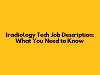Iradiology Tech Job Description: What You Need To Know