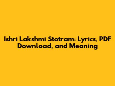 Hey everyone! Ever feel like you could use a little extra good fortune and prosperity in your life? Well, you're in the right place! Today, we're diving deep into the Ishri Lakshmi Stotram, a powerful hymn dedicated to Goddess Lakshmi, the Hindu deity of wealth, fortune, and prosperity. We will explore the lyrics, and I'll even provide a PDF download link so you can easily access the stotram. This is your comprehensive guide to understanding and benefiting from this beautiful prayer.