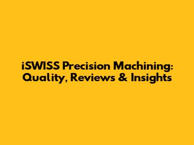ISWISS Precision Machining: Quality, Reviews & Insights