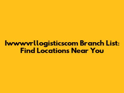 Iwwwvrllogisticscom Branch List: Find Locations Near You