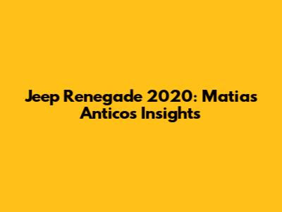 Hey there, Jeep enthusiasts! Ever wondered about the Jeep Renegade 2020? Well, you're in the right place! We're diving deep, getting into the nitty-gritty, and exploring what makes this compact SUV tick, with a special nod to Matias Antico's perspective. If you're considering snagging a 2020 Renegade or just curious about its features, performance, and overall appeal, this is the spot to be. We'll cover everything from its design and tech to how it handles on the road and what kind of value you can expect. Ready to roll? Let's get started!