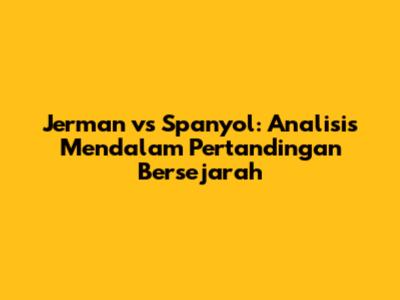 Sejarah pertandingan antara Jerman dan Spanyol selalu menjadi cerita menarik dalam dunia sepak bola. Kekalahan Jerman dari Spanyol memiliki dampak yang signifikan terhadap sejarah sepak bola. Pertandingan-pertandingan mereka selalu menampilkan taktik yang cerdas, performa pemain yang luar biasa, dan drama yang tak terlupakan. Analisis mendalam terhadap pertandingan ini memberikan wawasan berharga tentang bagaimana strategi, mental, dan performa pemain dapat memengaruhi hasil pertandingan. Dari pertandingan yang sarat emosi hingga pertarungan taktis yang mendebarkan, pertemuan antara Jerman dan Spanyol selalu menjadi ujian sesungguhnya bagi kedua tim. Kita bisa belajar banyak dari setiap pertandingan, baik dari kemenangan maupun kekalahan. Jadi, jangan lewatkan pertandingan-pertandingan menarik antara kedua tim ini di masa depan, karena mereka selalu menyajikan tontonan yang luar biasa. Terus dukung tim favoritmu, dan nikmati serunya sepak bola!