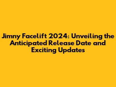 Alright, gearheads and adventure enthusiasts, let's dive headfirst into the exciting world of the Jimny Facelift 2024! We know you're all buzzing with anticipation, wondering when you can get your hands on the updated version of this iconic off-roader. Well, we're here to give you the lowdown on the release date, potential changes, and everything else you need to know about the Jimny Facelift 2024. Get ready, because the rumors are flying, and the excitement is palpable! Let's get started, shall we?