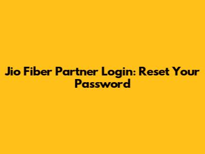 Jio Fiber Partner Login: Reset Your Password
