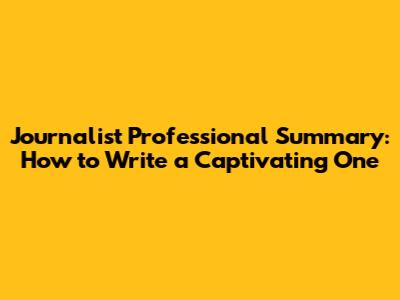 How to Write Your Journalist Professional Summary: A Step-by-Step Guide
