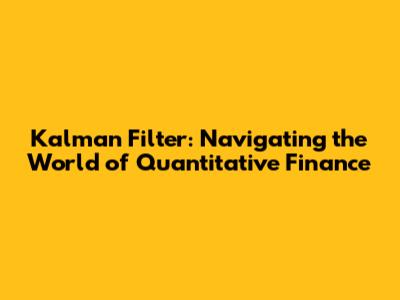Hey guys, let's dive into the fascinating world of Kalman Filters and how they're absolutely killing it in quantitative finance. If you're into finance, investments, trading, or just plain curious about how to make sense of noisy data, then you're in the right place. We'll explore what Kalman Filters are, how they work, why they're so crucial in finance, and even touch on how to get started with them. Buckle up, because this is going to be a fun ride!