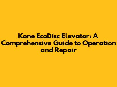 Kone EcoDisc Elevator: A Deep Dive Into Operation And Repair