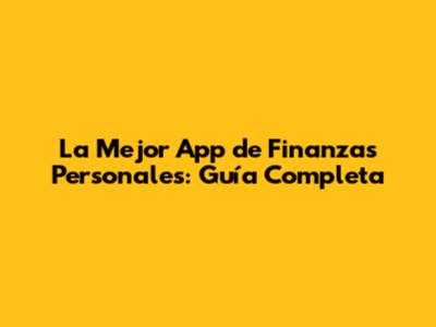 La Mejor App De Finanzas Personales: Guía Completa