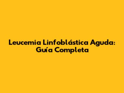 Leucemia Linfoblástica Aguda: Guía Completa