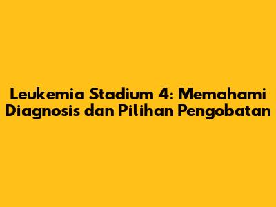 Leukemia stadium 4 adalah tahap lanjut dari penyakit kanker darah yang serius. Bagi banyak orang, mendengar diagnosis ini bisa jadi sangat menakutkan, dan wajar jika Anda memiliki banyak pertanyaan. Artikel ini akan membahas secara mendalam tentang apa itu leukemia stadium 4, mulai dari gejala yang mungkin muncul, bagaimana diagnosis ditegakkan, pilihan pengobatan yang tersedia, hingga harapan hidup dan cara untuk menghadapinya. Tujuannya adalah memberikan informasi yang jelas dan mudah dipahami, sehingga Anda atau orang terkasih dapat membuat keputusan yang tepat dan menjalani hidup sebaik mungkin.
