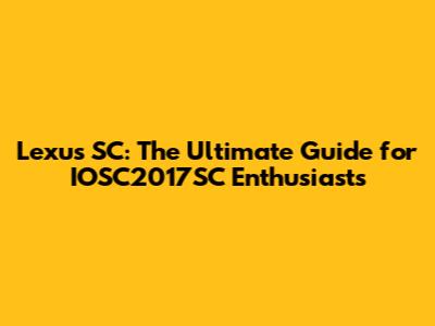 Lexus SC: The Ultimate Guide For IOSC2017SC Enthusiasts