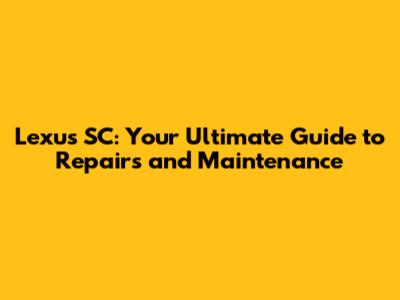 Lexus SC: Your Ultimate Guide To Repairs And Maintenance