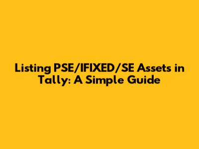 List PSE/IFIXED/SE Assets In Tally: A Simple Guide