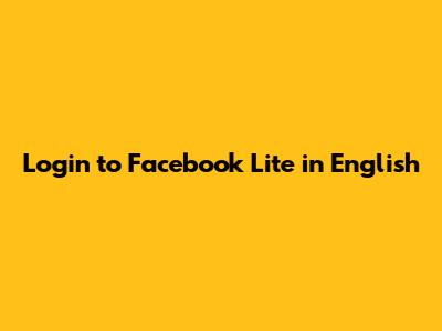 Login To Facebook Lite In English