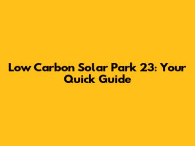 Low Carbon Solar Park 23: Your Quick Guide