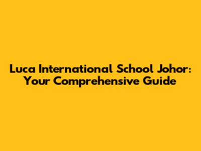 Luca International School Johor: Your Comprehensive Guide