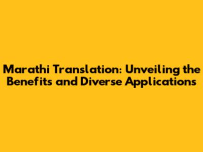 Marathi Translation: Benefits & Uses