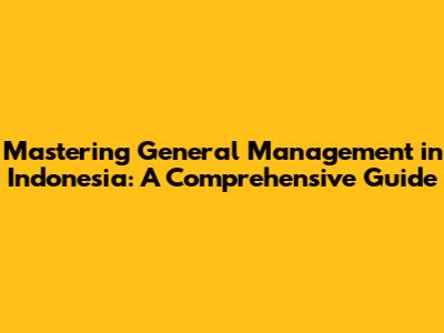 Mastering General Management In Indonesia: A Comprehensive Guide