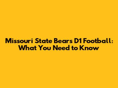 Missouri State Bears D1 Football: What You Need To Know