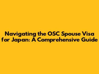 So, what exactly is an OSC spouse visa? Well, it's your golden ticket to living in Japan with your Japanese spouse. It allows you to reside in Japan long-term, work, and enjoy all the amazing experiences this country has to offer. This visa falls under the âSpouse or Child of Japanese Nationalâ category. It's designed for those who are married to a Japanese citizen and want to live with them in Japan. It's a fantastic opportunity, but it does come with a few hoops you need to jump through. The application process can seem a little daunting, but don't worry, we'll break it down step-by-step to make it more manageable. Understanding the fundamentals is the first step toward a successful application. This includes knowing your eligibility, the required documentation, and the application procedure.
