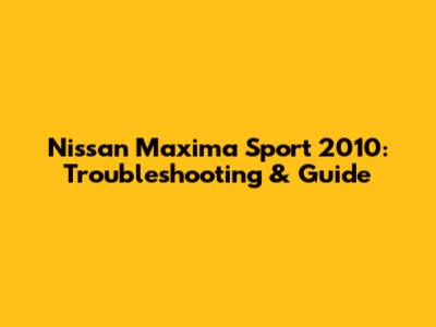 Nissan Maxima Sport 2010: Troubleshooting & Guide