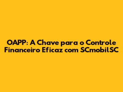 OAPP: Domine O Controle Financeiro Com SCmobilSC
