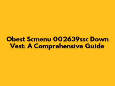 Hey guys! Let's dive deep into everything you need to know about the Obest Scmenu 002639ssc down vest. This isn't just any piece of clothing; it's a blend of style, comfort, and functionality. Whether you're an outdoor enthusiast, a fashion-conscious individual, or someone who simply appreciates quality apparel, this guide is tailored just for you.
